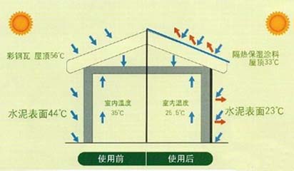 2、阻隔隔热:以空心微珠为隔热材料,在基体表面形成一层致密的真空层,可有效的阻隔太阳光辐射热和空气中热辐射的传导,减少基体的内部和外部的热量交换。