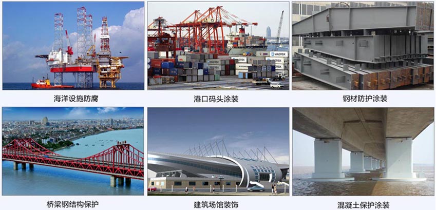 冷却塔内壁、码头、桥梁、隧道内混凝土专用防腐漆,也用于其他混凝土设备的防腐蚀保护涂装。